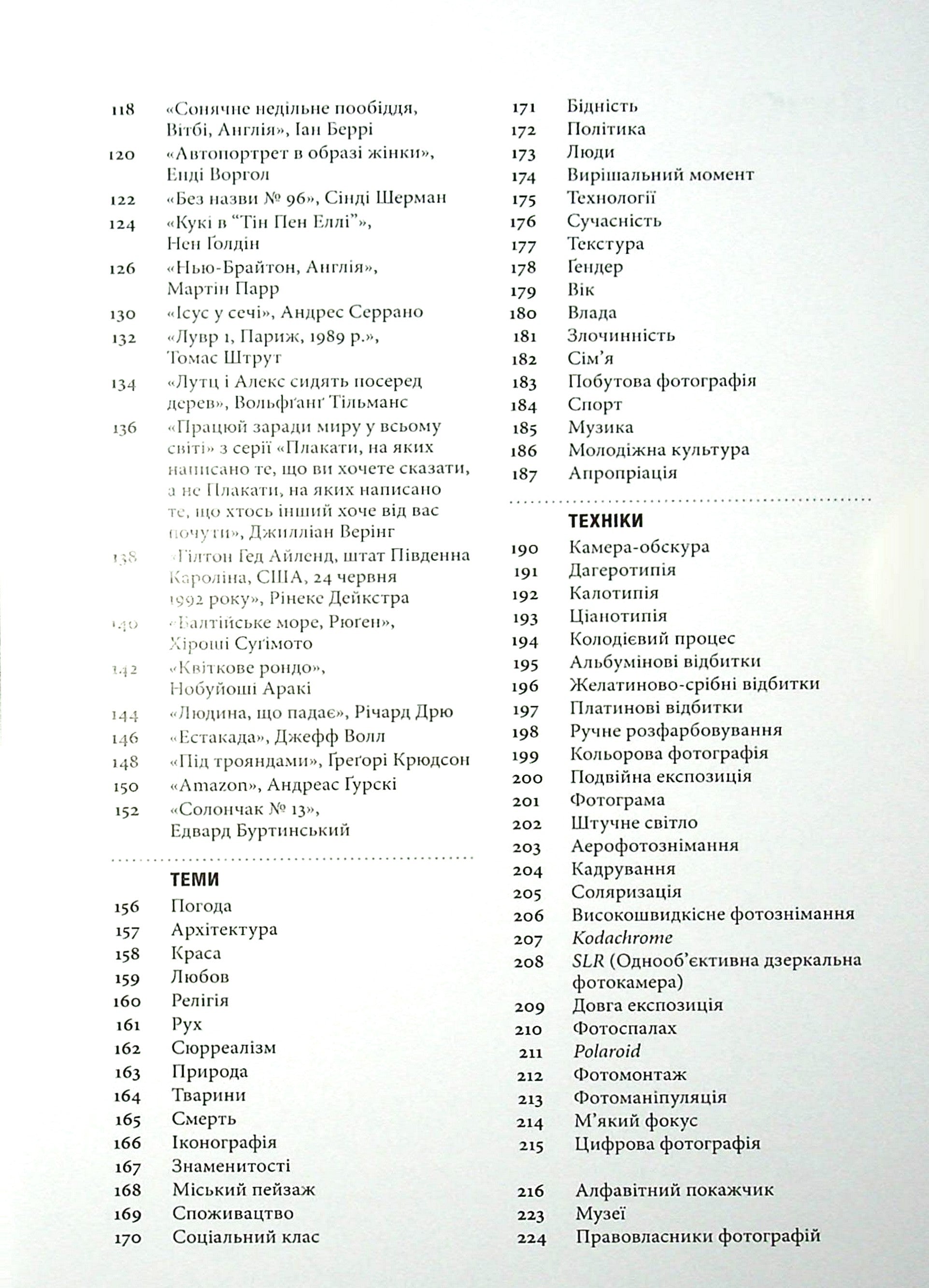 З книжки ви довідаєтеся, як, чому та коли певні фотографії справді змінили світ. Дизайн видання і продумана структура допомагають читачам легко орієнтуватися у ключових жанрах, митцях, темах та техніках фотографії.