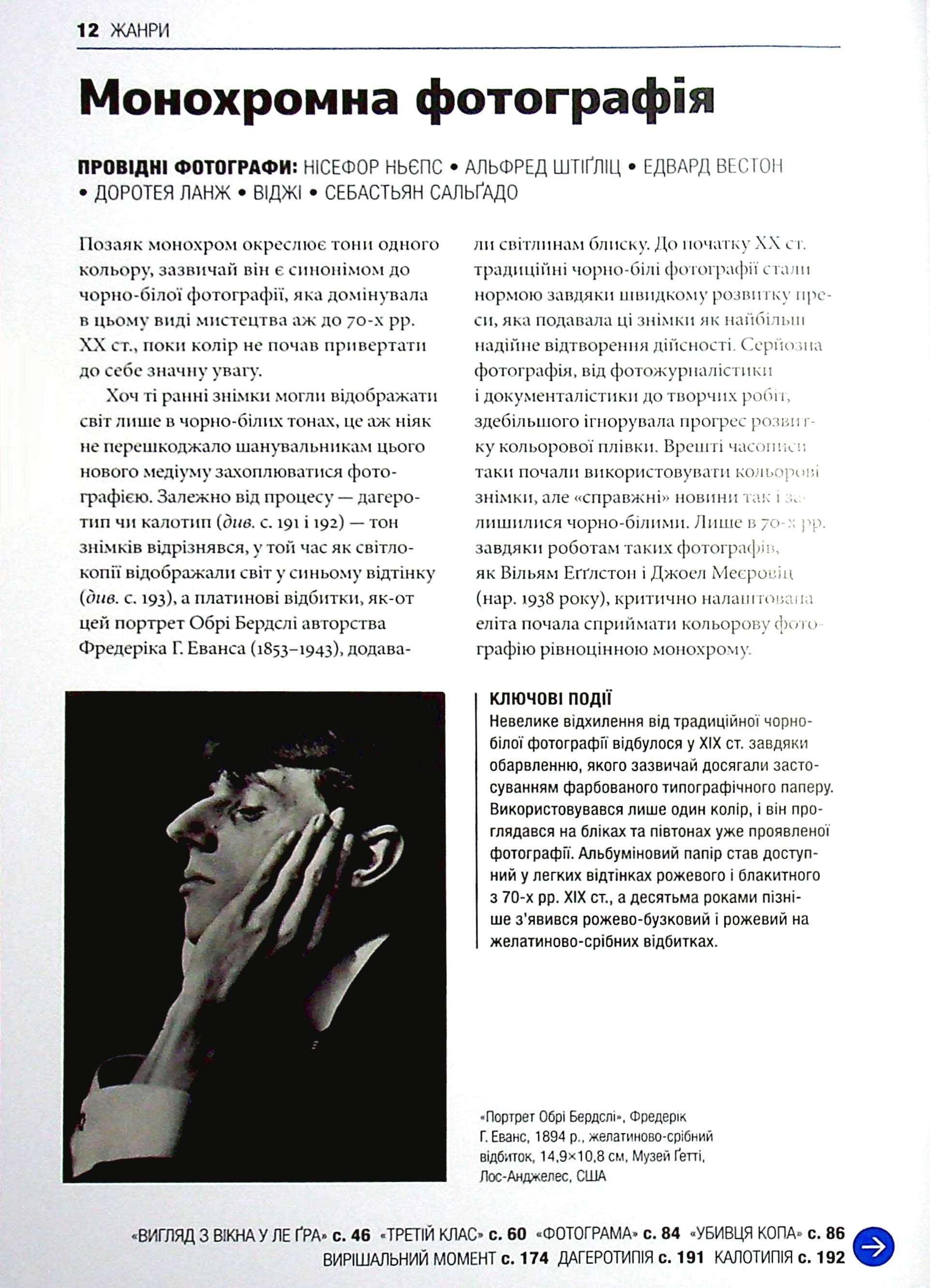 «Коротка історія фотографії» — інноваційний вступ до теми фотографії. У цій ілюстрованій книжці ви знайдете знакові світлини, роботи культових митців з часу перших експериментів із фотографією на початку ХІХ століття до періоду сучасного цифрового фото.